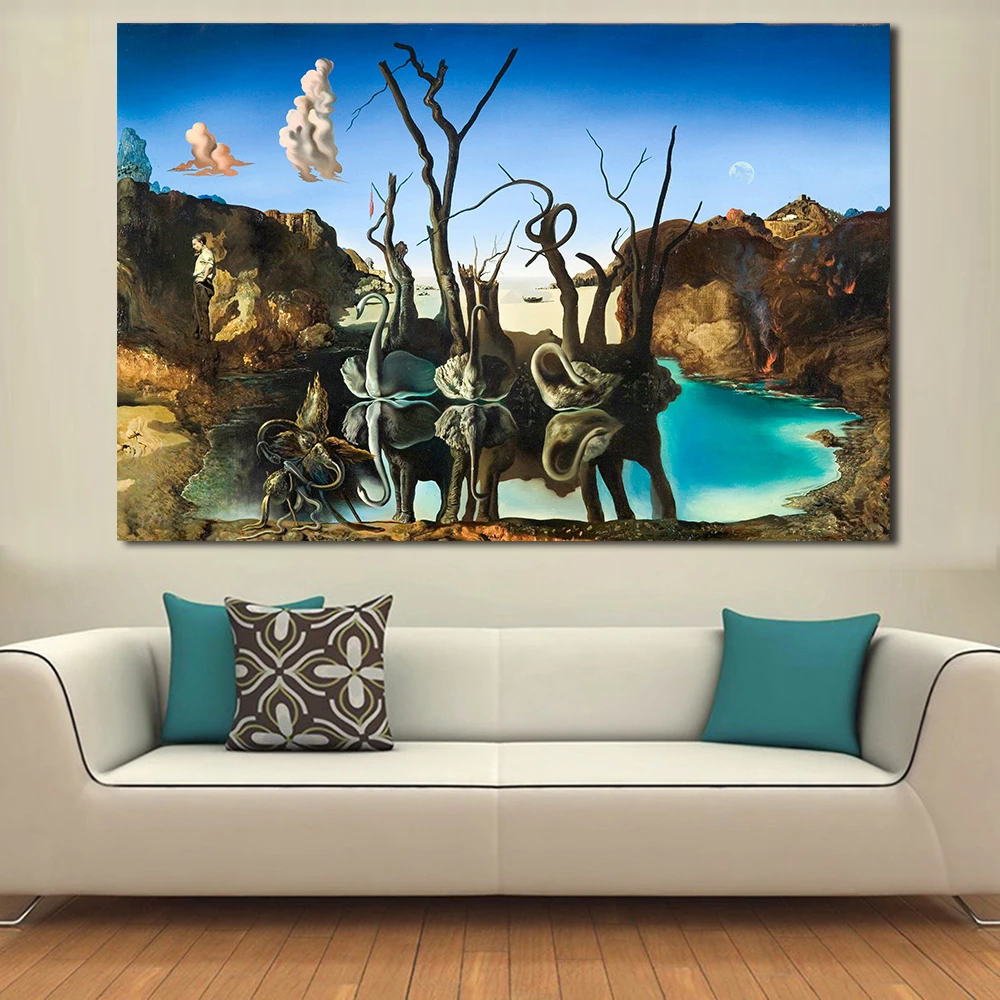 Jqhyart キャンバスアートサルバドール ダリの絵画反映白鳥象壁の写真リビングルームのホームインテリアプリント Picture For Living Room Wall Picturespaintings Swans Aliexpress